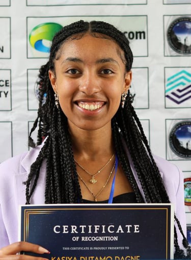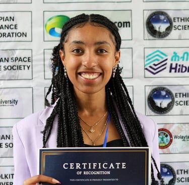 Samrawit Hagos carried out a pioneering study in biology that examined the impact of local microbial communities on ecosystem resilience in Ethiopian highland environments. Her research—blending field sampling, lab analysis, and ecological modelling—won first place in the 2022 Ethiopian High School Research Competition. The project reflects her dedication to bridging scientific inquiry and environmental stewardship in Ethiopia.